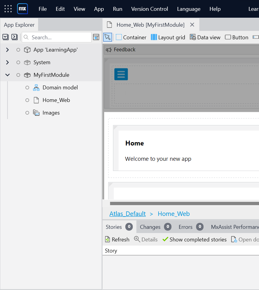 This menu allows developers to browse and organize our project structure by help in create, modify the pages, microflows, nanoflows and entities etc…